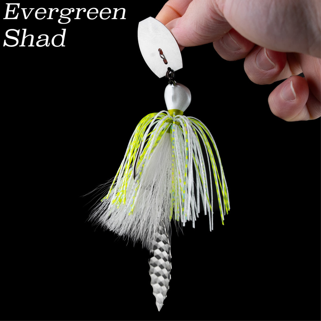 The Hybrid Vibe 'Flash' adds an extra flare to our best selling vibrating lure: The Hybrid Vibe. A size 4 serrated willowleaf blade is attached to the hook via an industry leading, USA made Worth Company ball bearing swivel. Upon retrieval, the blade will frantically whip & spin back and fourth, emitting extra flash to compliment the sinewy, multi textured appearance of the NCB Hybrid-Skirt.