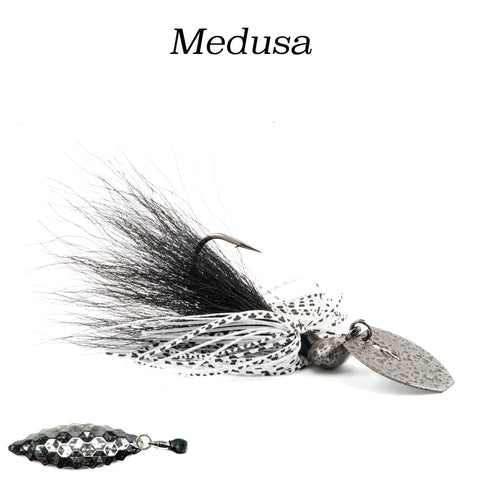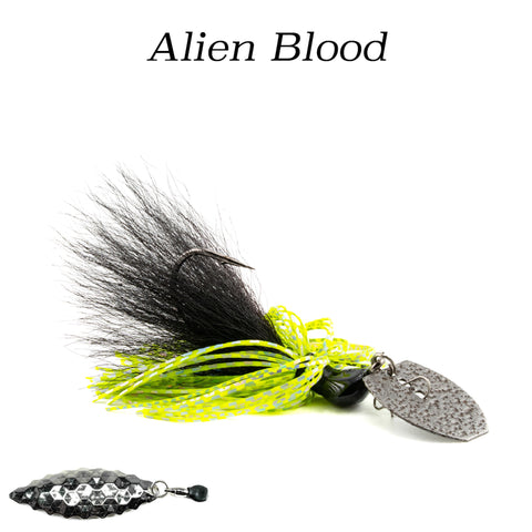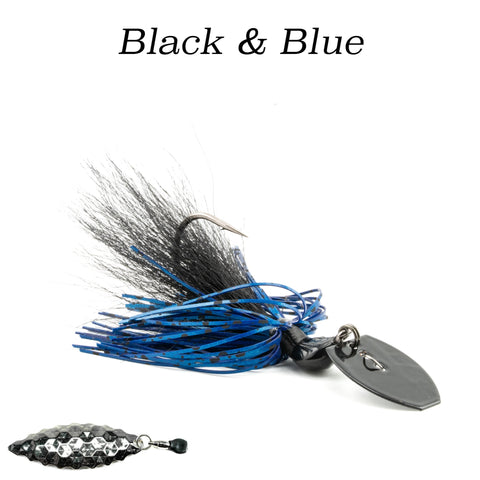 The Hybrid Vibe 'Flash' adds an extra flare to our best selling vibrating lure: The Hybrid Vibe. A size 4 serrated willowleaf blade is attached to the hook via an industry leading, USA made Worth Company ball bearing swivel. Upon retrieval, the blade will frantically whip & spin back and fourth, emitting extra flash to compliment the sinewy, multi textured appearance of the NCB Hybrid-Skirt.